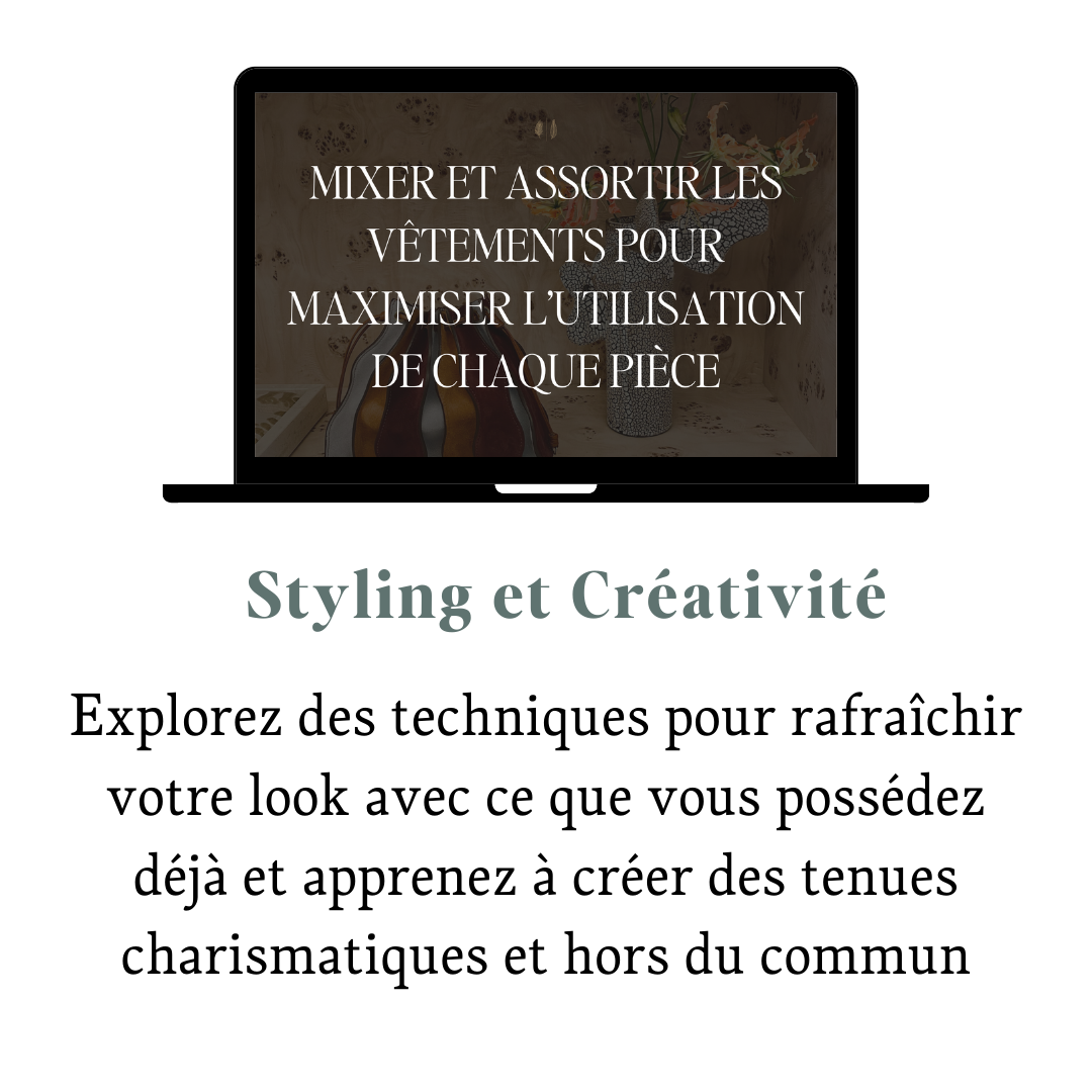 Non, ce cours vise à maximiser ce que vous possédez déjà. Vous apprendrez à voir votre garde-robe actuelle sous un nouveau jour et à utiliser vos vêtements de manière plus créative.